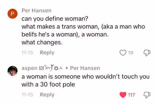 Short version: There’s no way to define “woman” using so-called “objective facts” such that you include all cisgender women while excluding all transgender women.