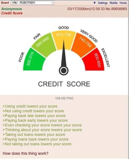 arrow-up1778arrow-down1imageAnon tries to understand credit scoressh.itjust.works🍹Early to RISA 🧉@sh.itjust.worksM to Greentext@sh.itjust.works · 12 days agomessage-square248linkfedilink