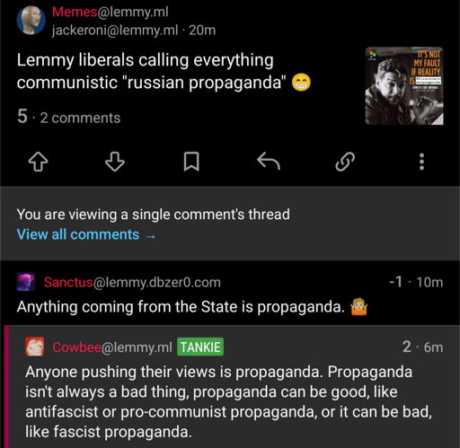 That’s the dictionary definition, sure, but that doesn’t cover common use, or connotation. When most people use “propaganda,” they typically mean government-affiliated messaging that hides the truth and pushes a narrative to get people to fall in line.