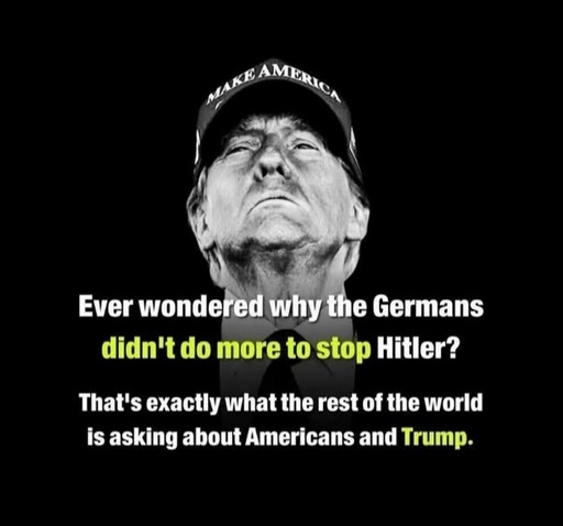 That is the explanation for the rest of the world. But the question implied by the post is why US-Americans don’t do anything to stop their leader as the Germans did not do anything to stop their leader.