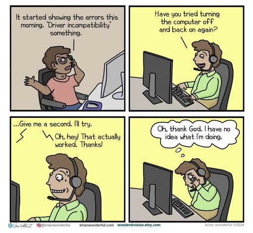 Do every single step of the recommended troubleshooting 3 times, with no success. Call IT, have them tell me to do the troubleshooting I just did, and it magically works.
