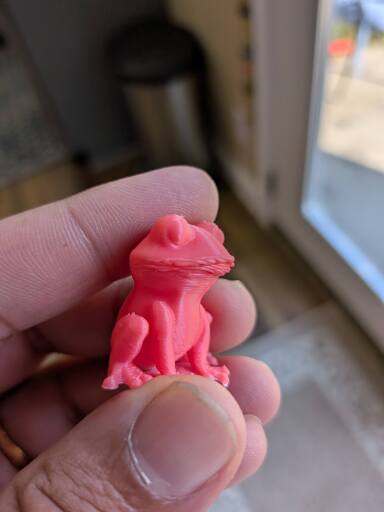 Tried printing the frog from this set at 75% scale, and it came out like this. The original 3mf for this one doesn’t include supports. What should I adjust on my printer to get better overhangs without supports?