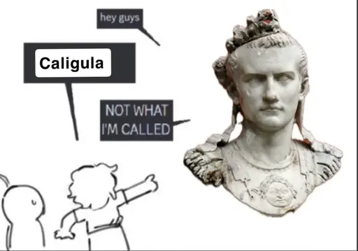 Explanation: The tyrannical Roman Emperor Caligula was not known as Caligula during his reign. ‘Caligula’ means ‘Little boots’ or ‘Little sandals’, from the military footwear of Roman legionaries - when Caligula was a young boy, his father, Germanicus, took him with him on campaigns, dressed up in a miniature soldier’s outfit. The troops loved him, and took to calling him Caligula - a nickname which he did not appreciate when he was older!