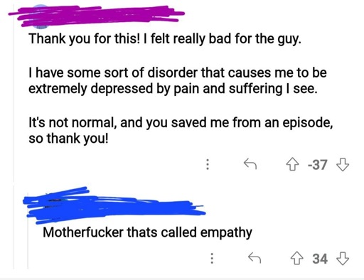 SomeoneElseMod@feddit.ukM to Murdered by Words@feddit.uk · 2 years agoThat weird condition... empathy.feddit.ukimagemessage-square0linkfedilinkarrow-up12arrow-down10