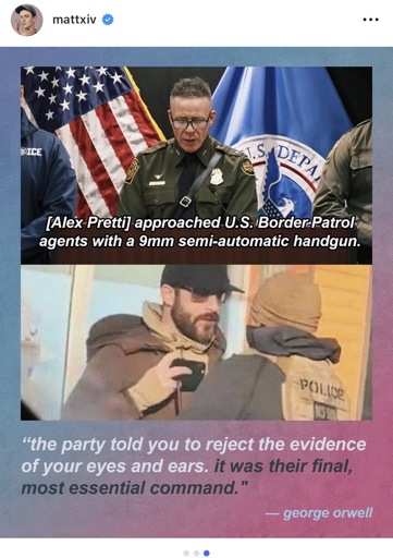 It’s even worse than the picture implies. Alex walked away from that confrontation, and then later ICE assaulted a woman in front of Alex. Alex was helping her while she was falling over. ICE didnt like him helping her so he decided to pepper spray both of them. ICE thugs jumped Alex during this and then executed him. There was zero confrontation, just murder.