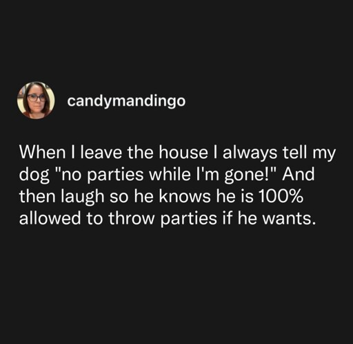 Queue 80’s movie where the dog throws a massive party to try to get laid with the girl next door but then they wreck the house and the last few minutes are just him trying to hide the evidence before you get home.