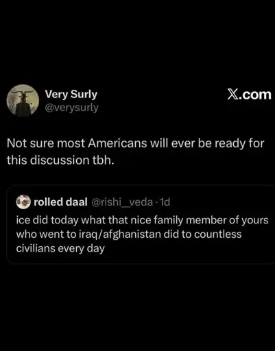 My point is, you can draw a direct through-line between Iraq/Afghanistan and what is happening now domestically. You can’t really separate the two. Thus there’s no point in drawing a distinction between a soldier and a “gravy seal”. That’s just cope; the military is not coming to save us