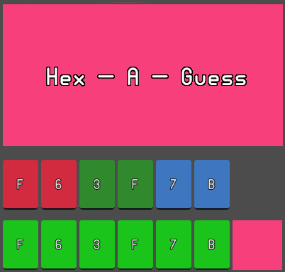 Hex-A-Guess is a colour guessing game for graphic designers, web developers, and nerds who like hexadecimal numbers. Can you guess one of sixteen million colours in only five attempts?