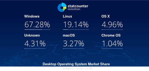 - This data ought to be wrong… could it be macOS wrongly reporting as linux? Cause a bunch of OSX market share just disappeared? - Yeah, it seems fishy. I find it hard to believe every 5th desktop in Finland runs linux, while only about 10% MacOS. - And that all of that happened in a few months