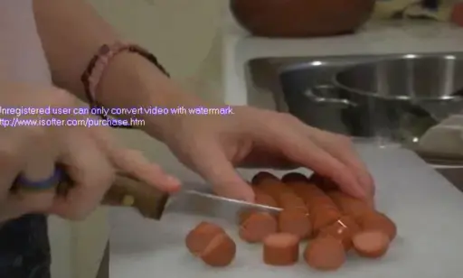 they show her cutting hotdogs!? ha, I didn’t remember that