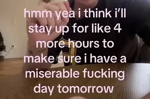 This is what my brain says after waking me up at 3am. Then I’m just getting snoozy around 7 and it’s time to get up and it’s like ahahaha gatcha bitch!