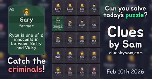 #CluesBySam - Feb 9th 2026 (Easy) 03:21 🟩🟩🟩🟩 🟩🟩🟩🟩 🟩🟩🟩🟩 🟩🟩🟩🟩 🟩🟩🟩🟩#CluesBySam - Feb 9th 2026 (Easy) 02:38 🟩🟩🟩🟩 🟩🟩🟩🟩 🟩🟩🟩🟩 🟩🟩🟩🟩 🟩🟩🟩🟩