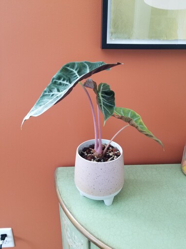 It probably would be a lot bigger if I hadn’t swapped everything to semi hydro last year to try and be rid of fungus gnats (a strategy which actually did work, but I’m a lazy plant parent so they didn’t really thrive in that). It lived in water for quite a while re-rooting so it was just a sad and dying leaf a couple months ago. It’s made a huge comeback this summer, with another leaf on the way.