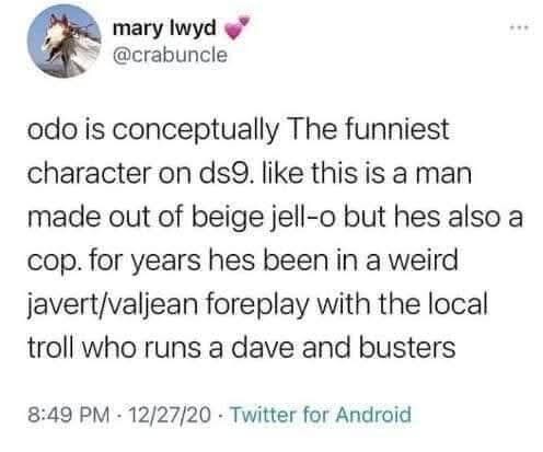 Have to watch DS9 again but remember the scenes where he encounters his abuser facading as his family as being particularly brutal and being annoyed he was put in that situation to begin with. Like the crew of DS9 didn’t recognise any issue until he’d involuntarily shapeshifted into a monster