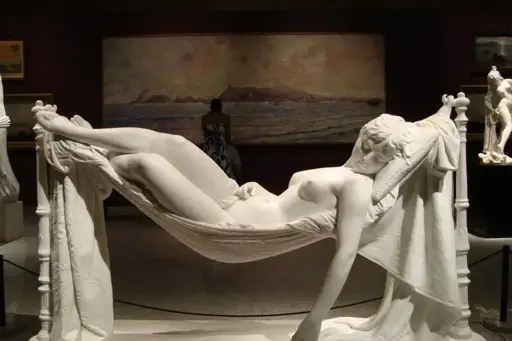 User thinkyfish in another comment also mentioned the cloth at both ends of the hammock are solid stone too, adding even more resistance to the sculpture. Fantastic work not just in beauty, but engineering too.