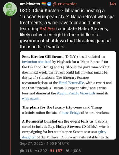 yonderbarn@lazysoci.al to Progressive Politics@lemmy.world · edit-23 days agoKirsten Gillibrand is hosting a Napa retreatlazysoci.alimagemessage-square14linkfedilinkarrow-up144arrow-down113