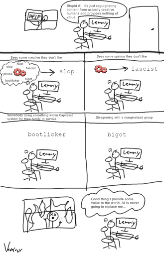 Technology is great, but once the direction starts to be toward replacing human work rather than supplementing or truly enhancing it without direct interference, that’s when it’s easy to get taken advantage of quickly by those up top who don’t have your best interest. If you don’t hold a little bit of skepticism about the intentions of those forcing AI into every space even where it makes no sense, and those refusing to regulate it, it’s easy to forget your own worth, and forfeit your privacy.