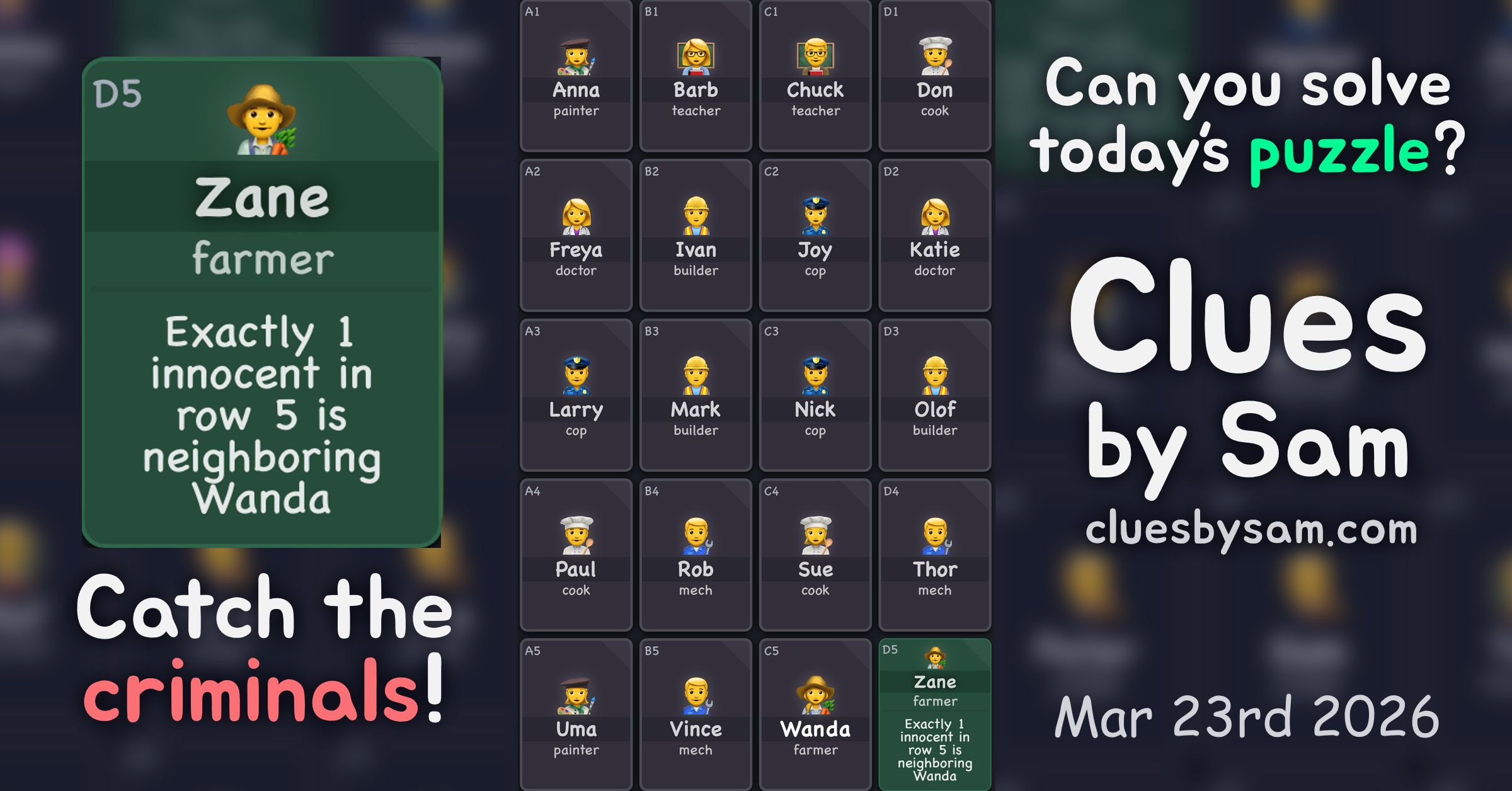 I solved the daily #CluesBySam, Mar 22nd 2026 (Hard), in less than 22 minutes 🟩🟩🟨🟩 🟩🟩🟩🟩 🟩🟩🟩🟩 🟩🟩🟩🟩 🟩🟩🟩🟩 https://cluesbysam.com/