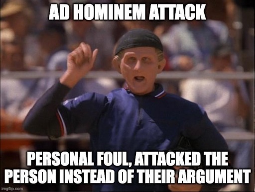 Also, an ad hominem is an attack against the person instead of the argument.