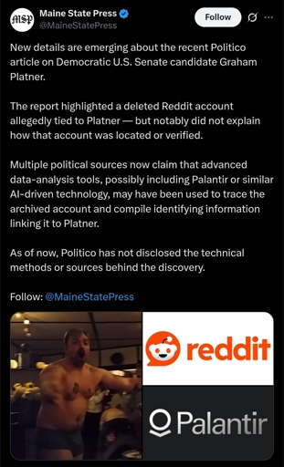 destructdisc@lemmy.world to A Boring Dystopia@lemmy.world · 10 days agoApparently Palantir can access the content of social media accounts that were deleted a decade ago.lemmy.worldimagemessage-square179linkfedilinkarrow-up1835arrow-down113file-text