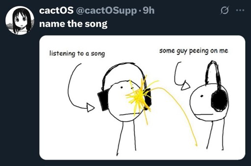 arrow-up12arrow-down1imageSong postinglemmy.worldno banana@lemmy.world to pissposting@lemmy.world · 8 months agomessage-square0linkfedilink