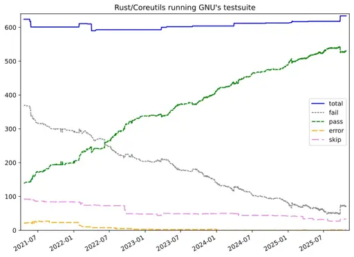 Rust Coreutils 0.3 brings improved GNU test suite compatibility with now passing 532 tests, or nearly an 84% pass rate. There is improved error handling and other updates to better match the behavior of GNU Coreutils… Such as the recently noted date issue breaking Ubuntu 25.10’s unattended upgrades.