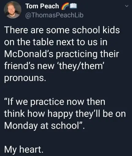 She struggles with they/them more than I do for some reason (I think because she’s a teacher and more literal with language).