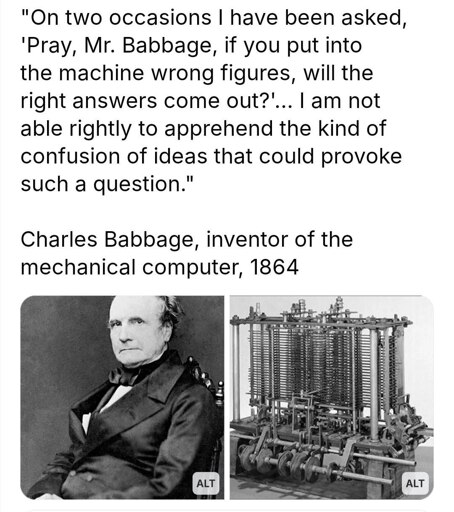 It is possible that the question was intended to be about human error checking prior to starting the process of calculating, like noticing a lack of a decimal on a monetary number in a data set, and Babbage misunderstood. That would be a valid question, but isn’t how the quote is phrased.