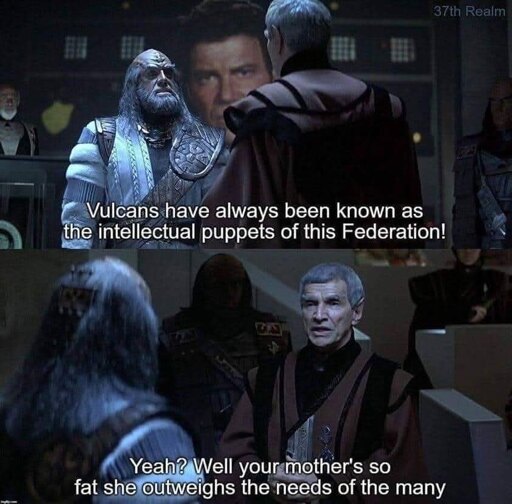 cannedtuna@lemmy.world to TenForward: Where Every Vulcan Knows Your Name@lemmy.worldEnglish · 4 days agoYour ship is so ugly it should be hauled away as garbagelemmy.worldimagemessage-square12linkfedilinkarrow-up1253arrow-down16