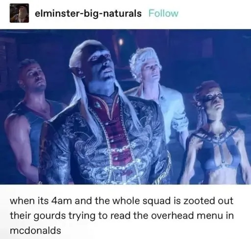 Last random thought but when I did my first playthrough as a good guy, I was romancing Wyll because he’s hot. But the second he started prancing around like a deer it basically shot his sex appeal in the head with a cannon. I remember choosing a cold as shit option at the end of it and him looking like a hurt puppy dog and I INSTANTLY went over to Gale. Started talking to him and realized I actually quite like every single part of his character and have never looked back. My husband <3