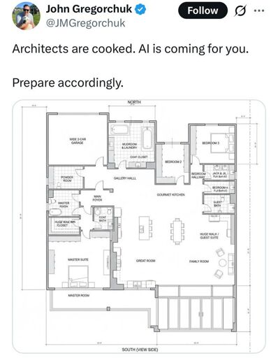 Architect here. Many of us are cooked. Asking a generalized model to spit out something legible will certainly yield these kinds of results. However, much of architecture, like many other fields, is based on facts driven by codes and prescriptive values. Those can be learned and easily maintained over time. Tools like Finch, Hypar, TestFit, and many others are attempting to streamline so so much of the design process. They’re also removing a tremendous amount of tedium, sure, but in doing so they are preventing the next generation of designers from becoming masters of the craft. It’s pretty discouraging, because you either keep up with the times by using these tools aimed at eliminating your entire career field, or you can boycott them and lose out on work.