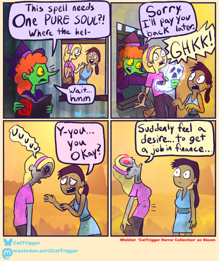 CatTrigger@lemmy.ml to Comic Strips@lemmy.world · 3 months agoWhen a WITCH SPELL needs a SOUL!!!plus-squarelemmy.mlimagemessage-square0linkfedilinkarrow-up12arrow-down10